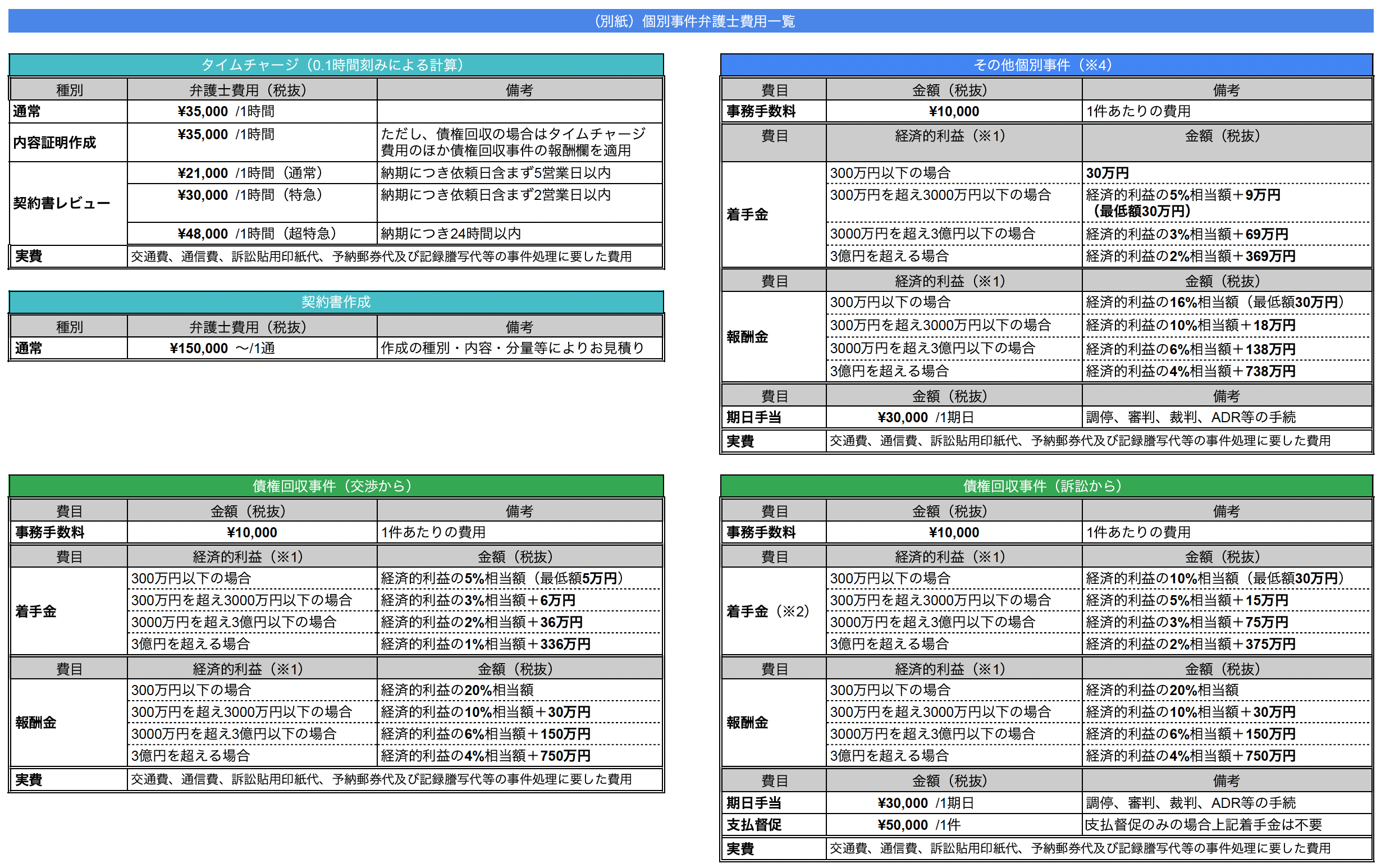 契約書のリーガルチェックについては別途費用(38,500円/時間)がかかりますが、通常料金の40%off(23,100円/時間)で対応いたします。